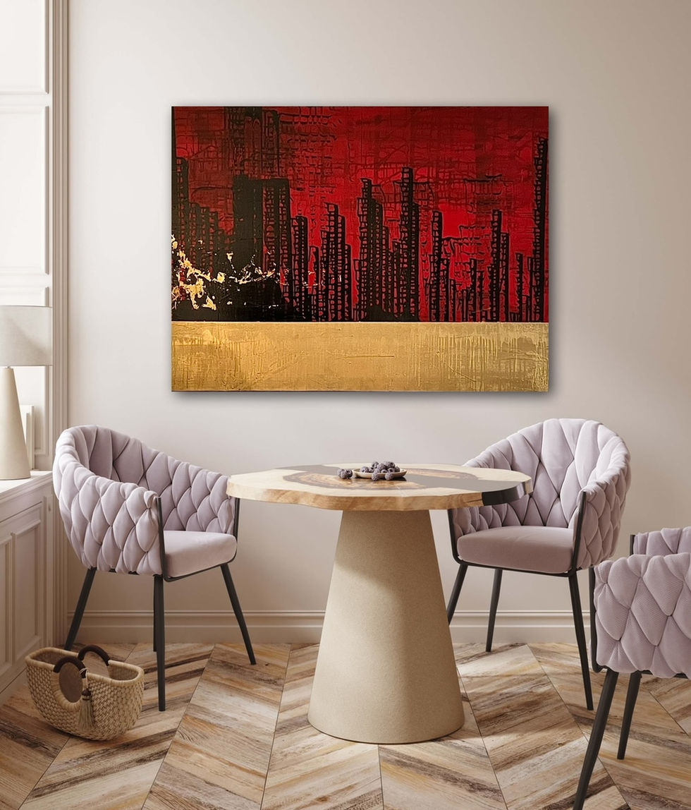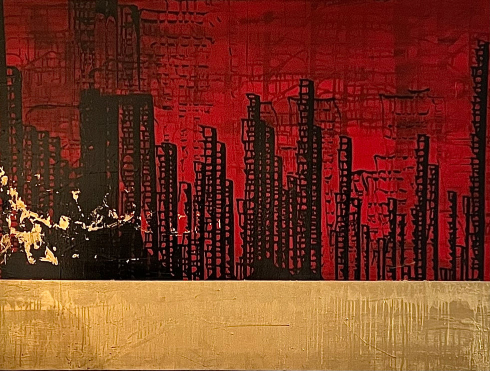 Acrylic, India Ink, and Gold Leaf on Canvas